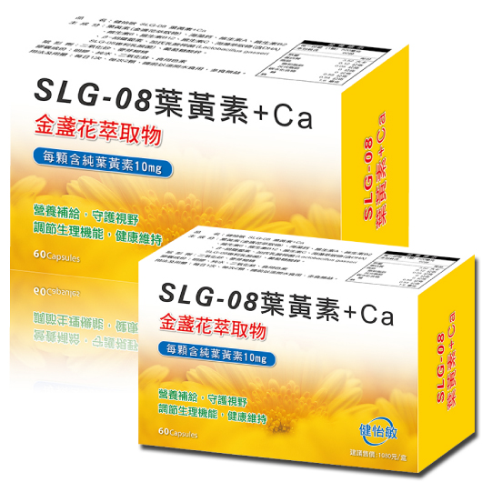 產品品名:健怡敏SLG-08葉黃素+鈣(500mg/60粒裝) 用法用量:每日一次,每次2顆,睡前食用,多食無益 金盞花萃取物,每g含純葉黃素10mg •通過ISO 9001認證實驗室之重金屬檢驗及微生物檢驗合格。 •本產品已投保產品責任險。